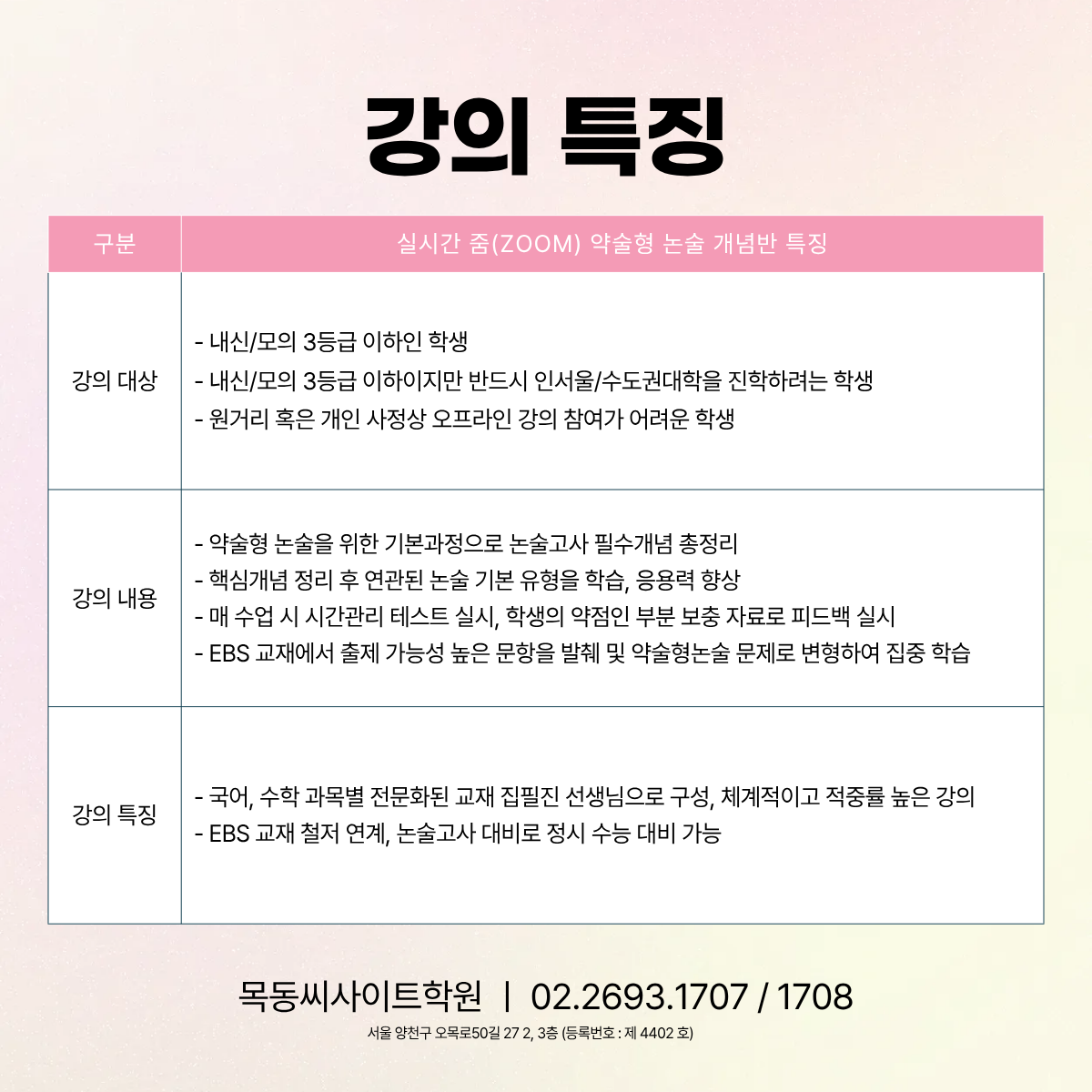 β μμ½λ¬Έμ: 02) 2693 - 1707 (λνμ ν), 2693 β 1708