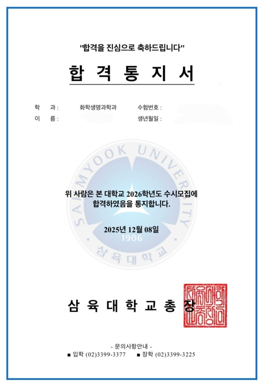삼육대 화학생명과학과 지원하였습니다