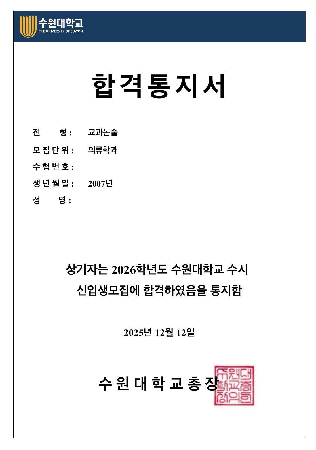 가천대는 1차추합, 삼육대 수원대는 최초합, 상명대 경기대는 예비로 마무리하게되어서 가천대26학번이 될 예정입니다