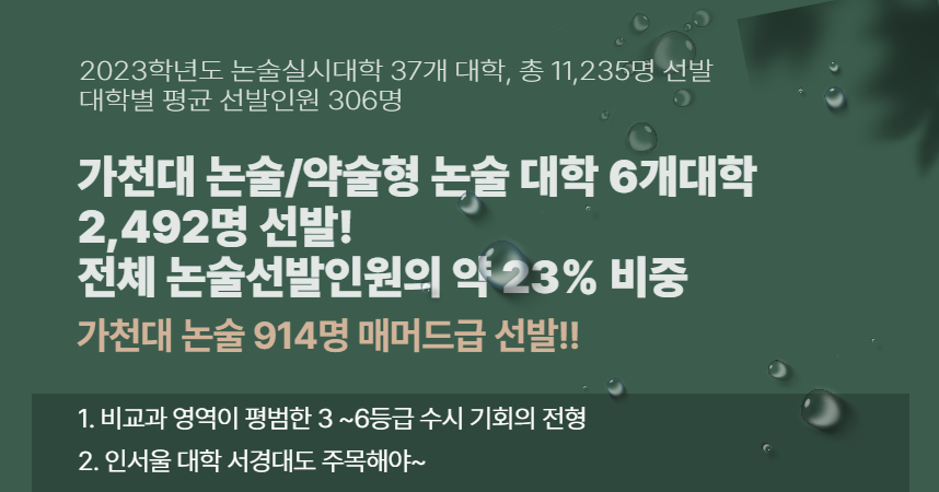 2023학년도 가천대 논술 주요사항 및 합격전략
