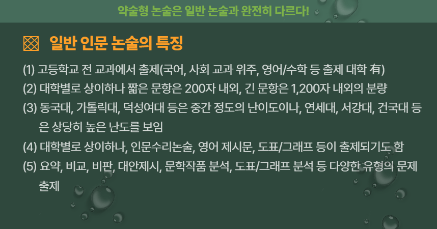 이러한 일반 논술과 가천대 논술/약술형 논술은 완전히 다른 시험의 특징을 보여 줍니다.