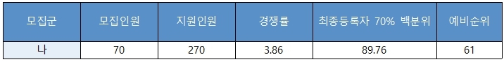 ※ 입결을 보실 때 수시 전형별 학생부 반영방법, 학생부 반영비율, 수능 최저 유무, 면접 유무 등을 미리 확인하고 보셔야 합니다. 정시의 경우도 산정 기준이 백분위인지, 표준점수인지, 반영 과목, 과목별 가중치 부여 여부 등을 미리 확인하고 보셔야 합니다.