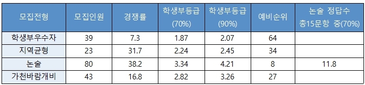 ·학생부 우수자 전 형 : 학생부 100% 반영(교과 100%)