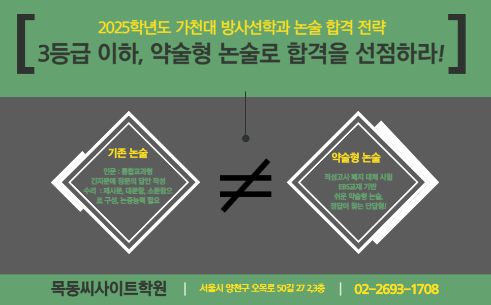 안녕하세요. 가천대 약술형 논술만을 10년 이상 전문적으로 연구하고 강의하는 목동씨사이트입니다.
