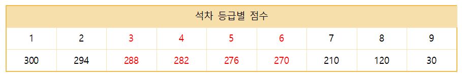 [석차등급별 점수] 작년 기준