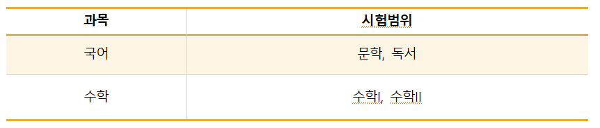 시험범위는 수학은 수1, 수2로,