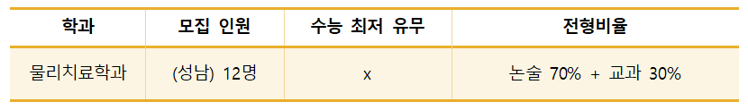 물리치료학과는 을지대 외에