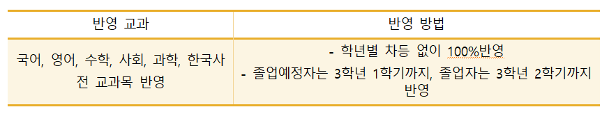 □ 반영교과 및 석차등급 배점