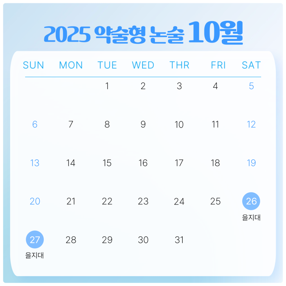 10월 고사 실시 대학 : 을지대