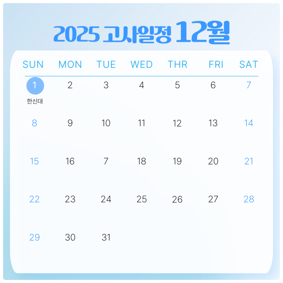 12월 고사 실시 대학 :한신대