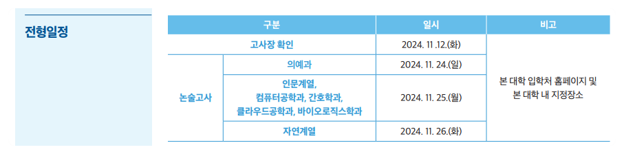 2025학년도 약술형논술 고사 일정