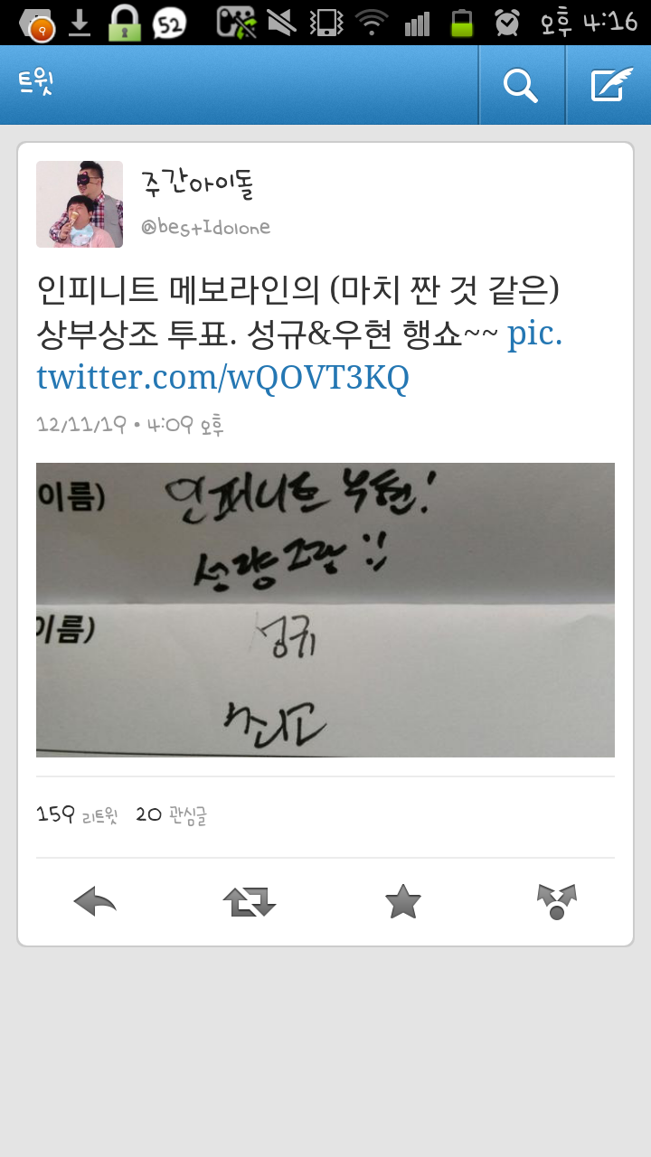 ㅈㄱㅇㅇㄷ 트위터 작성자우리리더규|작성시간12.11.19|조회수834 목록 댓글 20 글자크기 작게가 글자크기 크게가 방금 ㅈㄱㅇㅇㄷ트위터에 올라온 사진인데 역시 우리 메보라인들 서로에게 투표를ㅋㅋㅋ둘 다 인피니트에서 빠질수없는 보컬들이죠~^^길게 쓰지도않고 짧고 강하게!상부상조 우현성규 다음검색 현재 게시글 추가 기능 열기 북마크 공유하기 신고 센터로 신고 댓글 댓글 20 댓글쓰기 답글쓰기 댓글 리스트 작성자영원히나무현 | 작성시간 12.11.19 ㅋㅋㅋㅋㅋㅋㅋㅋㅋㅋㅋ훈훈하네요 마치 짠것처럼.. 작성자탱이규 | 작성시간 12.11.19 앜ㅋ메보라인///ㅋㅋ앜좋당..ㅠ 작성자합집합 | 작성시간 12.11.19 역시 메보네요ㅋㅋ 상부상조 좋쿤요!! 작성자성규오빠내남자 | 작성시간 12.11.19 우와 ㅎㅎ둘이 같이 ㅎㅎ 너무 보기 좋네요 ㅎㅎㅎ 메인보컬라인 좋아요 ㅎㅎ 작성자블랙비쥬 | 작성시간 12.11.19 저는 행쇼를 쌩쇼로 봣어여.. 댓글 전체보기