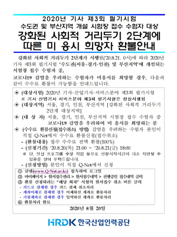 [큐넷공지] 기사 제3회 필기시험 미응시 희망자 환불 안내 작성자ㅣ모아소방학원ㅣ|작성시간20.08.21|조회수341 목록 댓글 3 글자크기 작게가 글자크기 크게가 기사시험 미응시 희망자는 아래 내용 참고하시길 바랍니다. ^^큐넷 바로가기http://www.q-net.or.kr/man001.do?gSite=Q 다음검색 현재 게시글 추가 기능 열기 북마크 공유하기 신고 센터로 신고 댓글 댓글 3 댓글쓰기 답글쓰기 댓글 리스트 작성자뽀글맘 | 작성시간 20.08.26 감사합니다. 작성자은빛날개2 | 작성시간 20.08.26 감사합니다. 작성자domato | 작성시간 20.09.22 감사합니다 댓글 전체보기