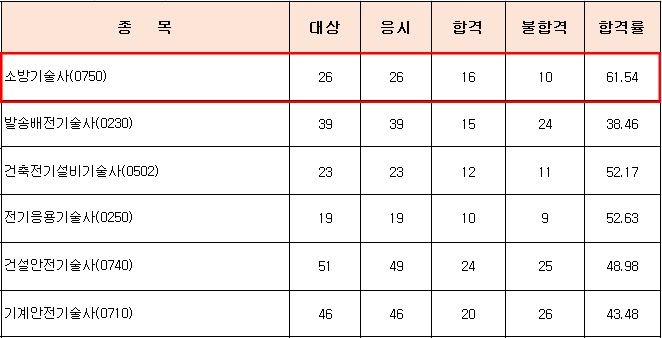제 124회 소방기술사 실기 합격률은 61.54%로