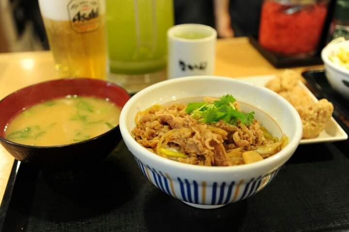 저는 규동과 미소시루를 주문했습니다.