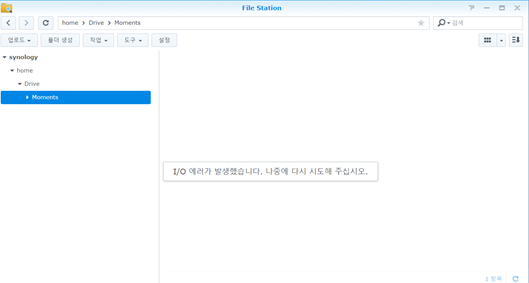그러다가 file station 들어가질 때도 있는데, 그럼 위의 오류 메시지가 뜹니다.