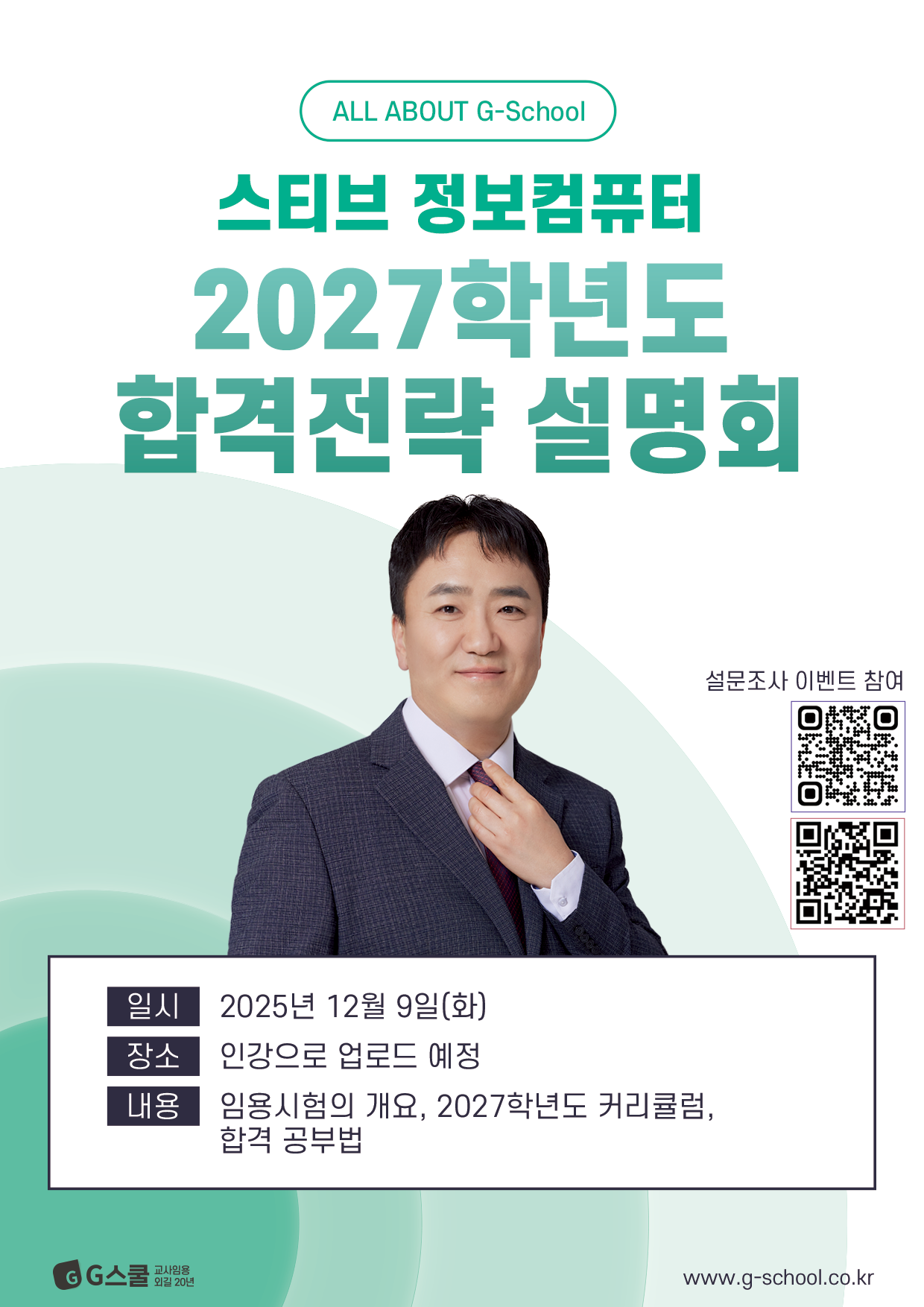 [G스쿨] 2027학년도 대비 ALL ABOUT G스쿨 합격전략 설명회 안내 작성자G스쿨|작성시간25.12.08|조회수284 목록 댓글 0 글자크기 작게가 글자크기 크게가 다음검색 현재 게시글 추가 기능 열기 북마크 공유하기 신고 센터로 신고 댓글 댓글 0 댓글쓰기 답글쓰기 댓글 리스트