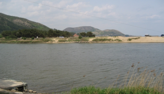 5월의 칠포 해수욕장 근처 해변과 강은