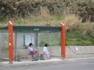 오도1리 정류소...나들이 나온 아낙들도 더위에 지쳐가고...