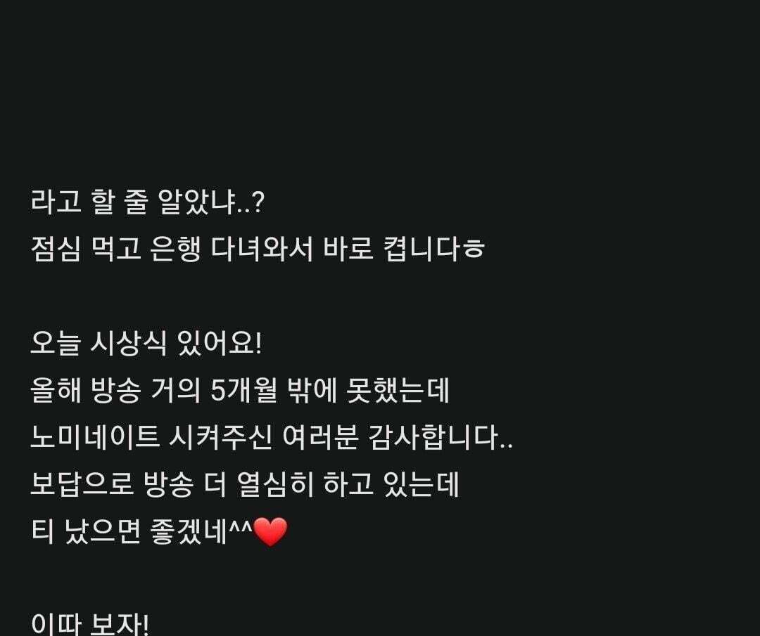 크리스마스 휴방공지 작성자우는두부|작성시간23.12.24|조회수423 목록 댓글 2 글자크기 작게가 글자크기 크게가 변화구 ㅋㅋㅋㅋㅋㅋ 다음검색 현재 게시글 추가 기능 열기 북마크 공유하기 신고 센터로 신고 댓글 댓글 2 댓글쓰기 답글쓰기 댓글 리스트 작성자베레모잉 | 작성시간 23.12.24 이런 변화구도 가능하네 ㅋㅋㅋ 작성자아찔미하잉 | 작성시간 23.12.24 재밌으시네 ㅋㅋ 댓글 전체보기