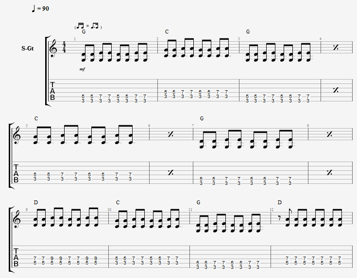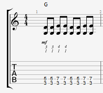G코드의 경우야. 중간의 숫자는 왼손 핑거링 번호지.