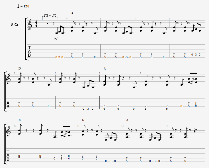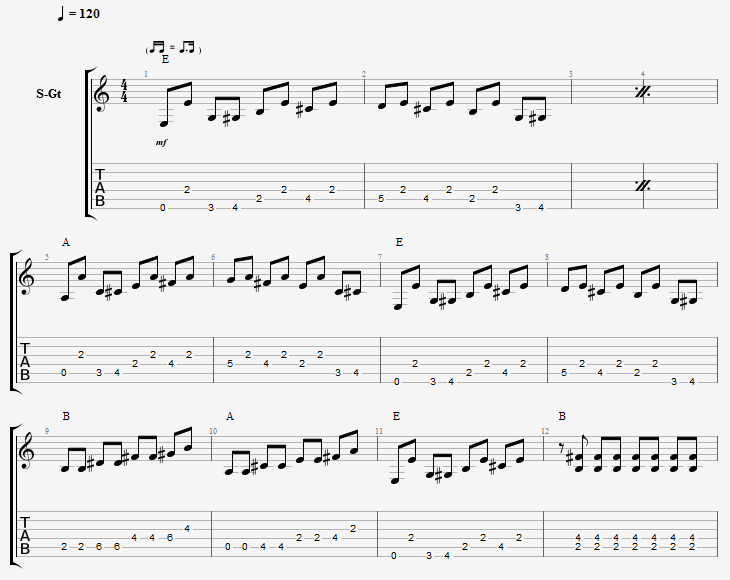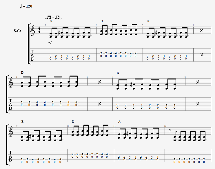 바로 위에 있는 악보는 오픈 포지션으로 연주를 했지.