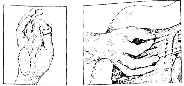 왼쪽그림의 오른 손바닥에 동그라미친 부분이