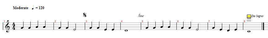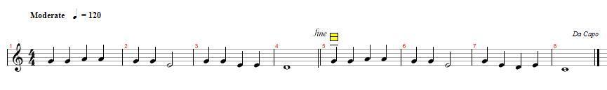 연주순서 1-2-3-4-5-6-7-8(다카포-처음으로 돌아가서)-1-2-3-4(fine 에서 끝)