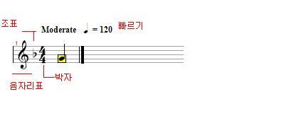 저 위의 그림에서는 1분동안 4분음표가 120번 연주되는 속도로 연주하라는 뜻.
