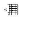 아까 말했다 시피 아래줄이 저음현, 위쪽이 고음현입니다. 이번엔 숫자대신 프랫을 직접 그린 모양입니다.