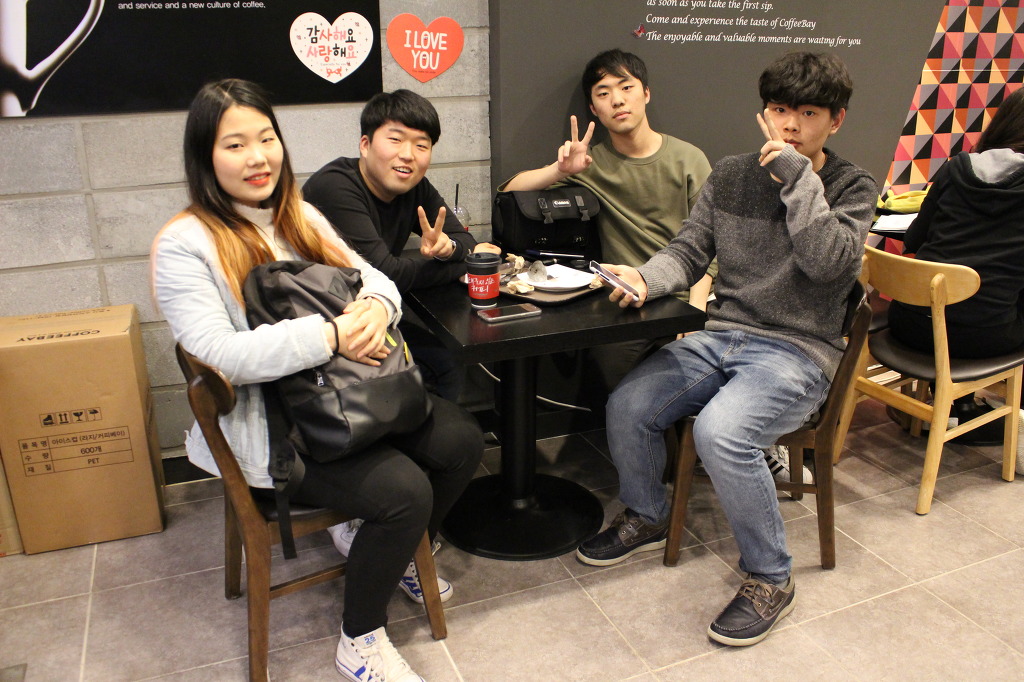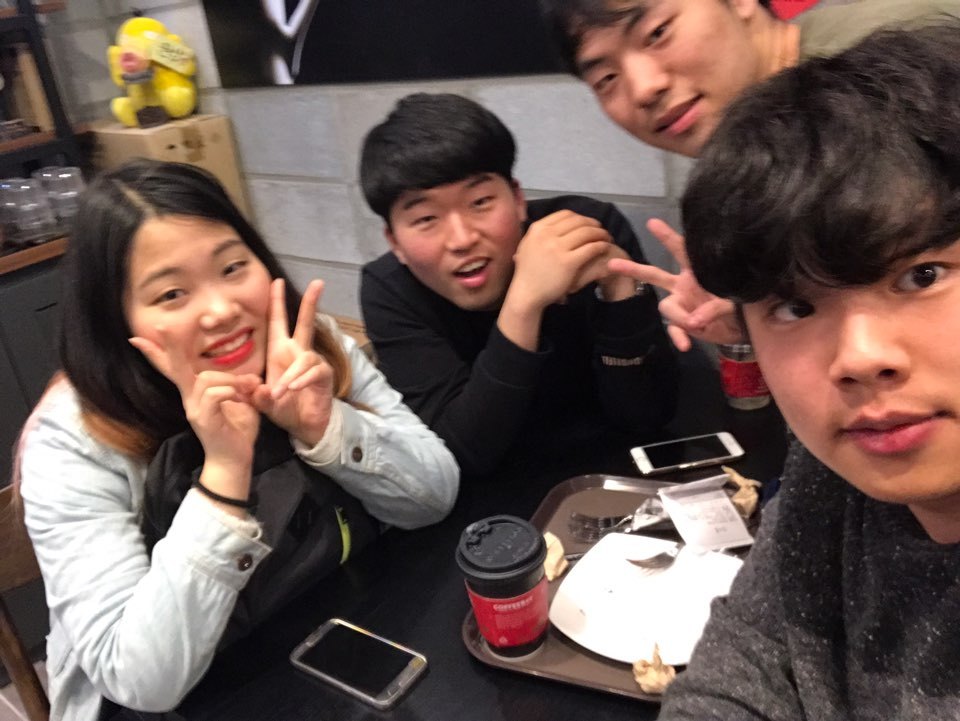 다들 시간맞추기가 어려워서 미루다가 겨우 맞춘게 4.5일(수)요일 8시 ㅋㅋㅋㅋ에 만났습니다. 우재형은 그날 컨디션이 겁나 안좋으셔서 못오게 되셨습니다. 8시다보니 밥먹기도 애매하고 은호랑 승환이는 다이어트를 한다그래서...(잘되고있나...?) 후문 커피베이 카페에서 만났습니다.