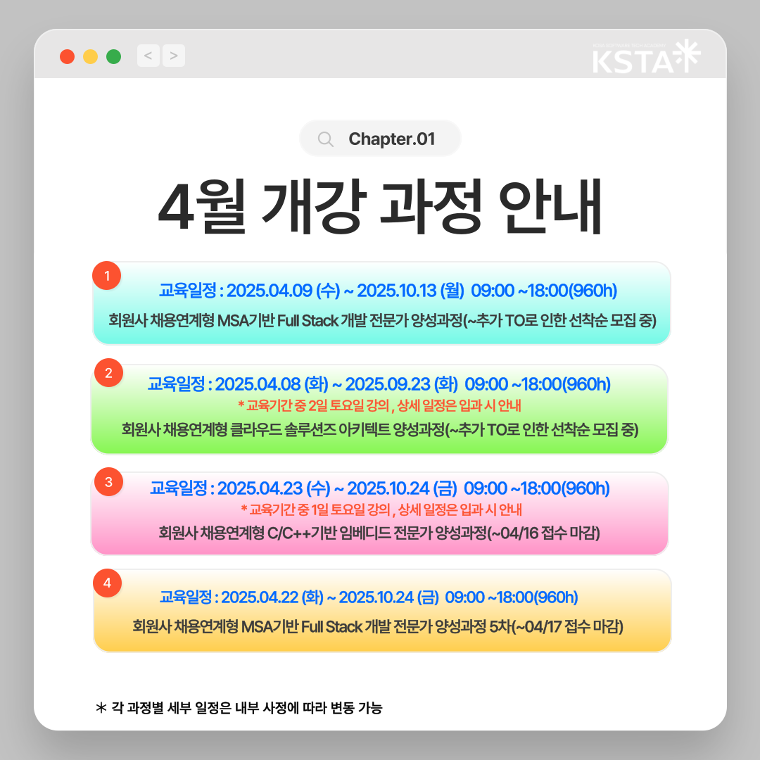협회에서 4월 개강 예정인 회원사 채용연계형 교육과정들을 소개드리려 합니다!