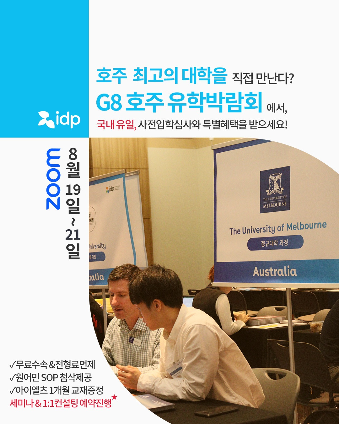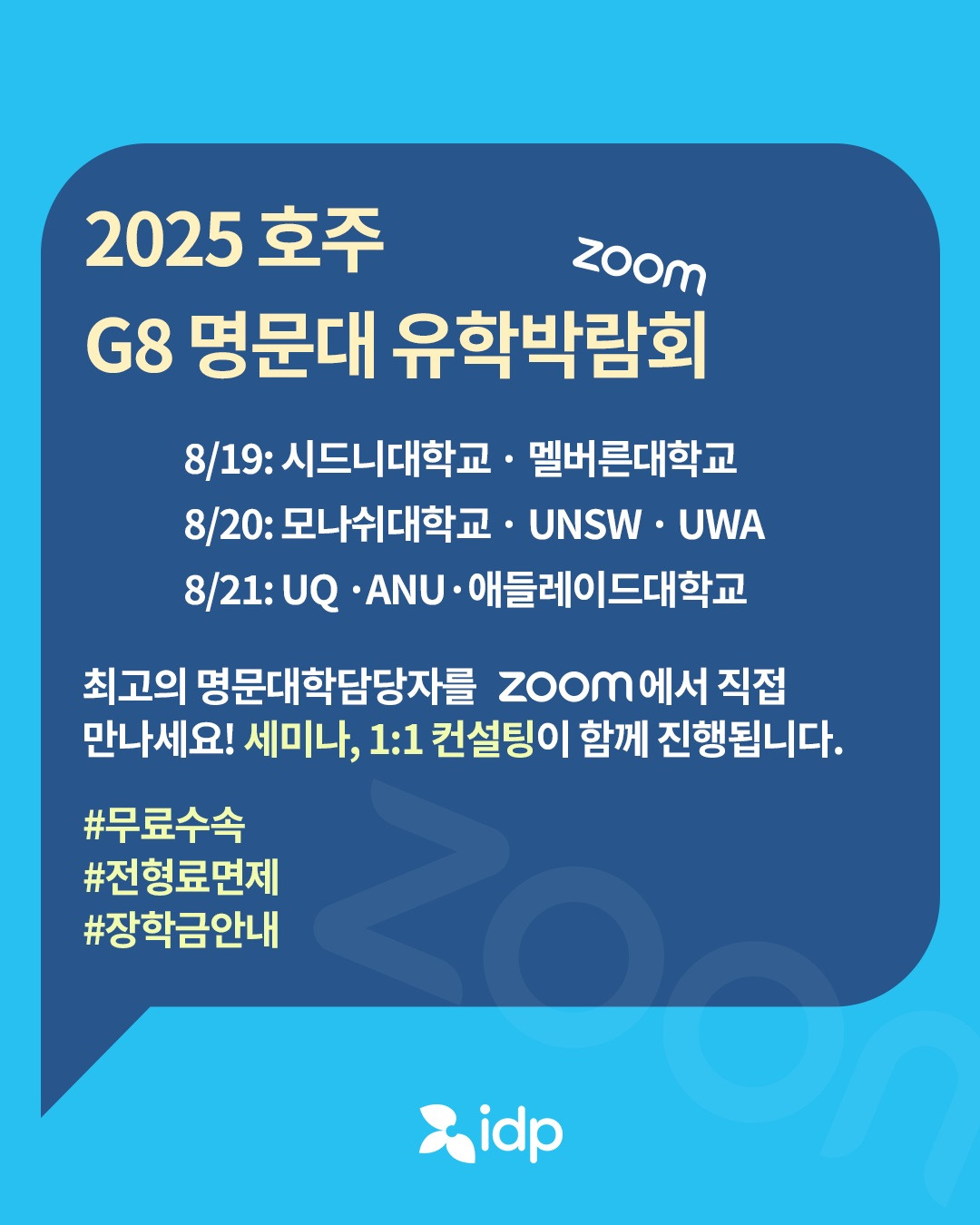 국내 유일! 호주 G8 전체가 참여하는 온라인 유학 박람회에서