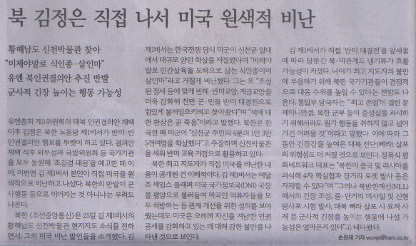 [스크랩] 북 김정은 직접 나서 미국 원색적 비난(민중이 깨어나야 나라가 바로 선다) 작성자0정천식0|작성시간14.11.26|조회수22 목록 댓글 0 글자크기 작게가 글자크기 크게가 다음검색 스크랩 원문 : 인천한겨레동아리 현재 게시글 추가 기능 열기 북마크 공유하기 신고 센터로 신고 댓글 댓글 0 댓글쓰기 답글쓰기 댓글 리스트