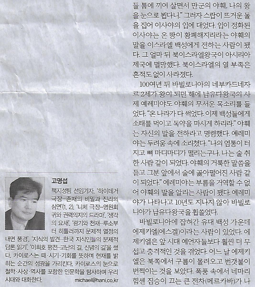 오피니언/ 고명섭의 카이로스/ 성스러움이 사라진 종교에 남는 것은(민중이 깨어나야 나라가 바로 선다) 작성자정천식|작성시간24.02.01|조회수32 목록 댓글 0 글자크기 작게가 글자크기 크게가 다음검색 현재 게시글 추가 기능 열기 북마크 공유하기 신고 센터로 신고 댓글 댓글 0 댓글쓰기 답글쓰기 댓글 리스트