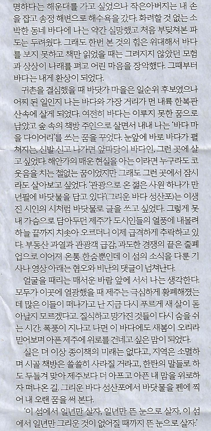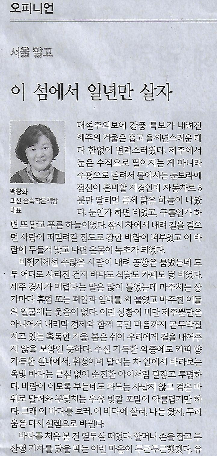 오피니언/ 서울 말고/ 이 섬에서 일년만 살자/ 백창화/ 괴산 숲속작은책방 대표/ 풍년화: 장벽을 뛰어넘는 환대를 꽃피우다/ 황금비의 작성자정천식|작성시간25.02.24|조회수14 목록 댓글 0 글자크기 작게가 글자크기 크게가 다음검색 현재 게시글 추가 기능 열기 북마크 공유하기 신고 센터로 신고 댓글 댓글 0 댓글쓰기 답글쓰기 댓글 리스트
