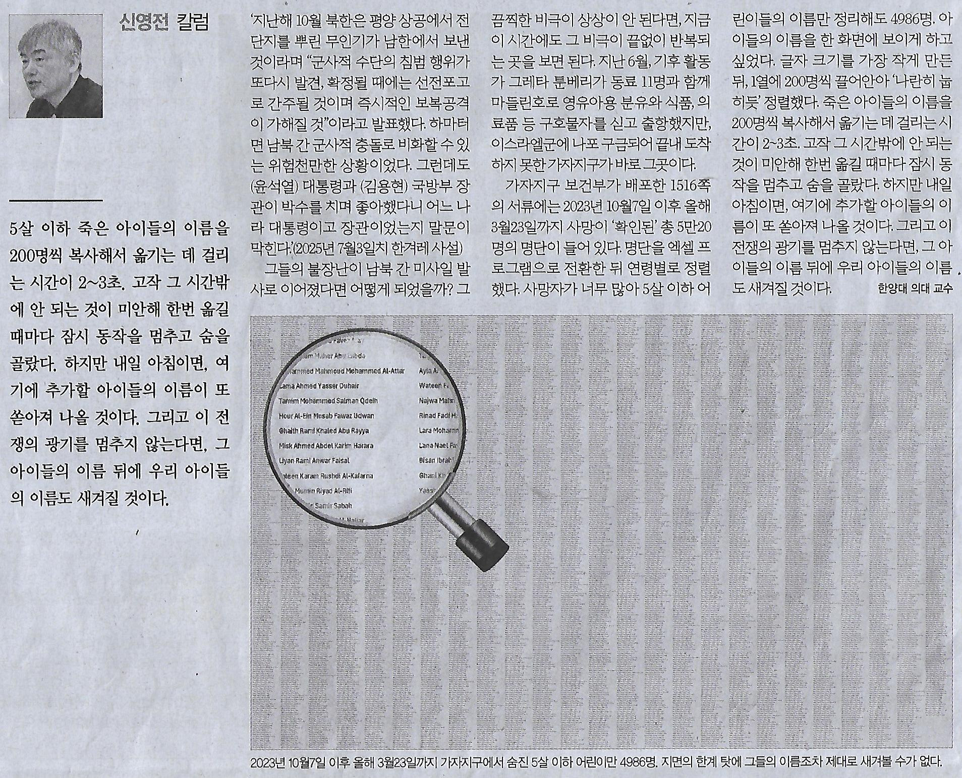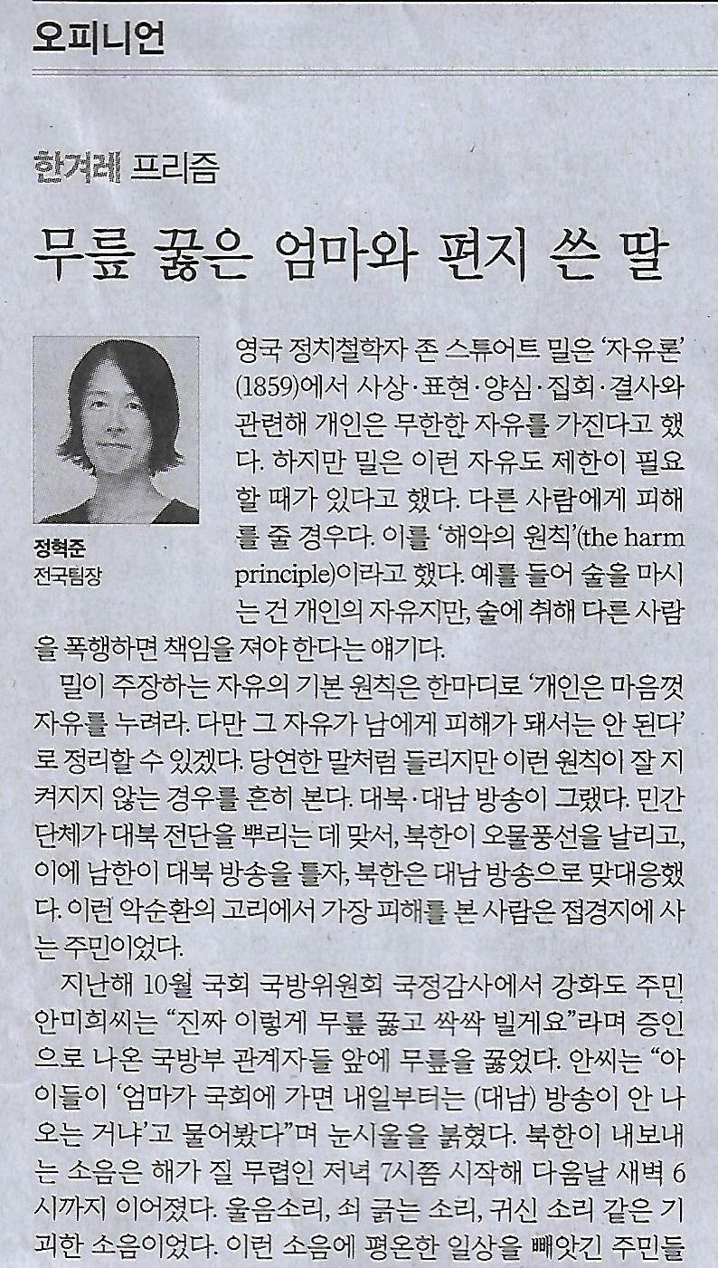 오피니언/ 한겨레 프리즘/ 무릎 꿇은 엄마와 편지 쓴 딸/ 정혁준 전국팀장/ 죽은 아이들의 이름을 눕혔다/ 신영전 칼럼/ 유레카/ 흔들 작성자정천식|작성시간25.07.07|조회수20 목록 댓글 0 글자크기 작게가 글자크기 크게가 다음검색 현재 게시글 추가 기능 열기 북마크 공유하기 신고 센터로 신고 댓글 댓글 0 댓글쓰기 답글쓰기 댓글 리스트