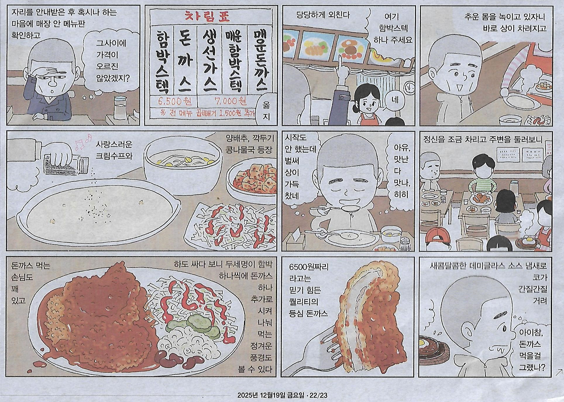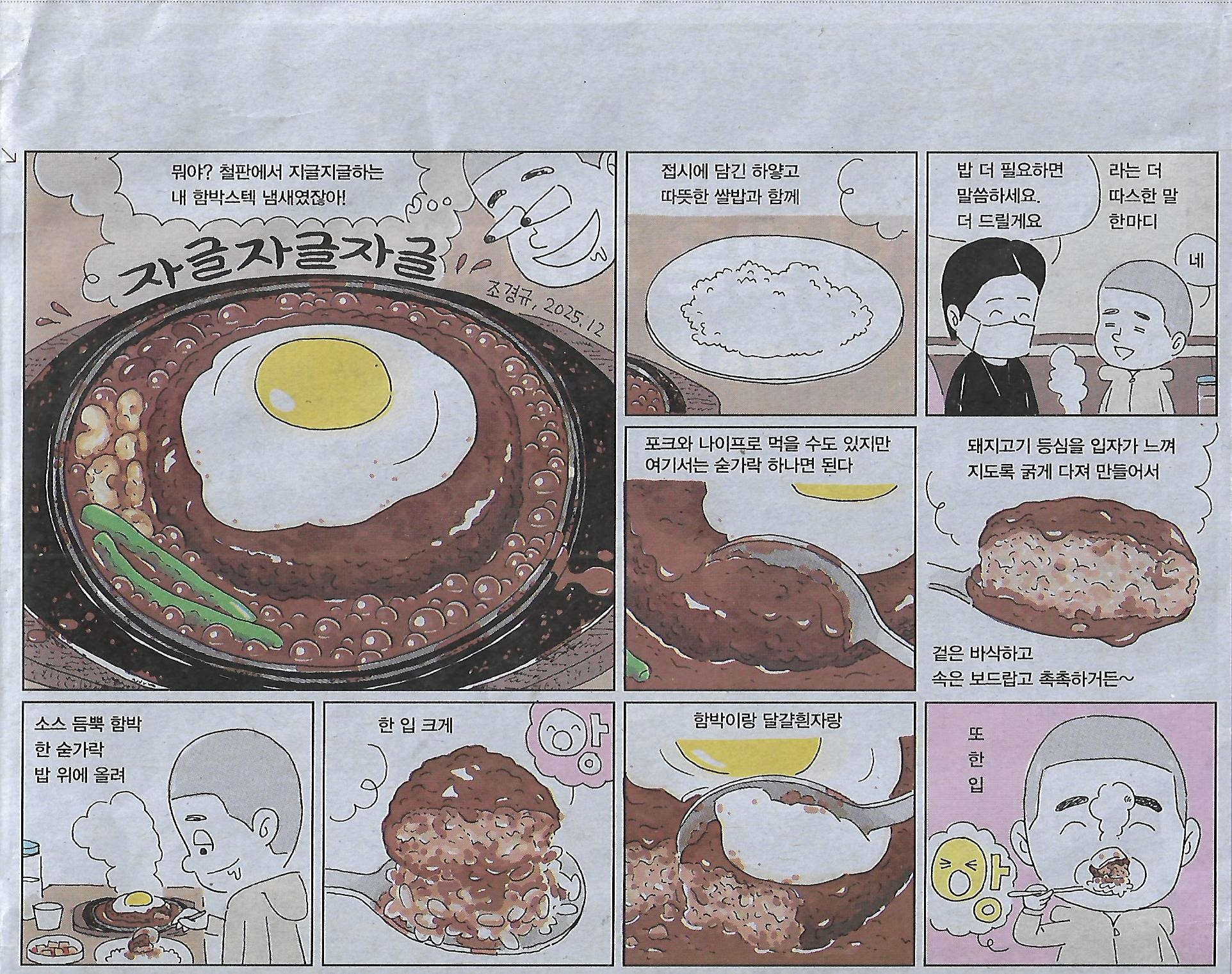 만화/ 오늘도 냠냠냠/ 63화 서울 수유동 다래함박스텍/ 2025년 12월 겨울 서울(민중이 깨어나야 나라가 바로 선다) 작성자정천식|작성시간25.12.20|조회수16 목록 댓글 0 글자크기 작게가 글자크기 크게가 다음검색 현재 게시글 추가 기능 열기 북마크 공유하기 신고 센터로 신고 댓글 댓글 0 댓글쓰기 답글쓰기 댓글 리스트