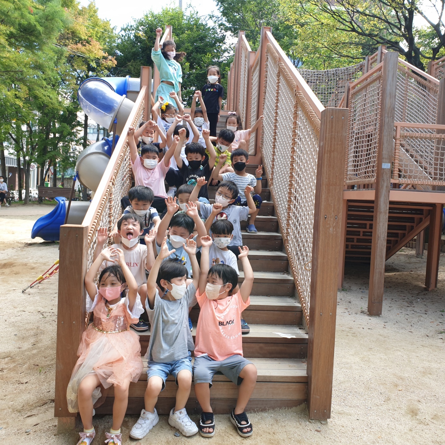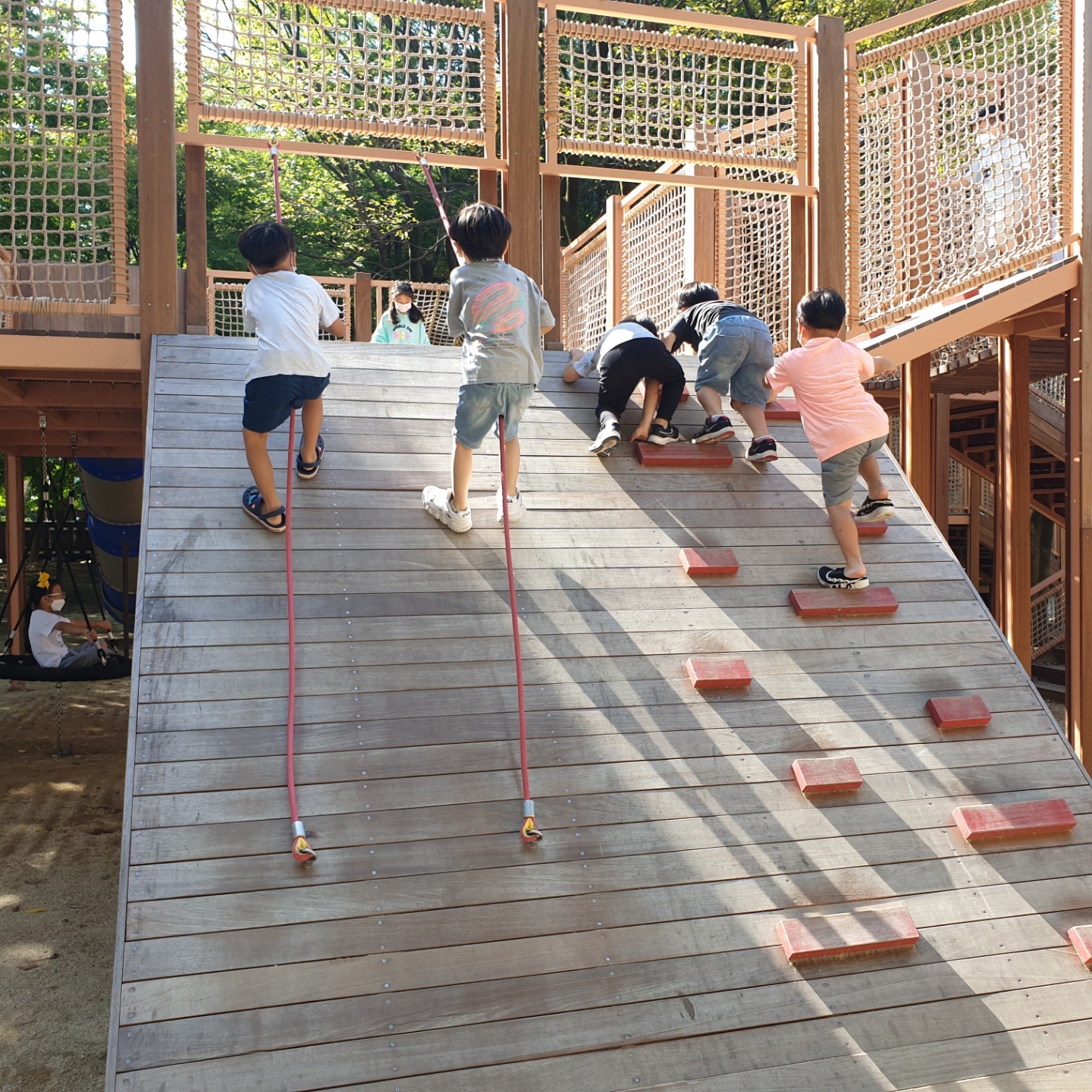 그물, 미끄럼틀, 짚라인 등의 놀이기구가 아이들을 사로잡았지요.