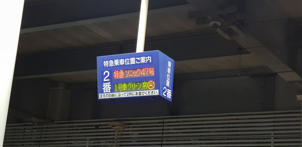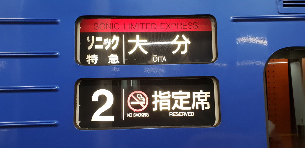 *우리가 탈 차량 번호 2번 금연석 오이타행 입니다.