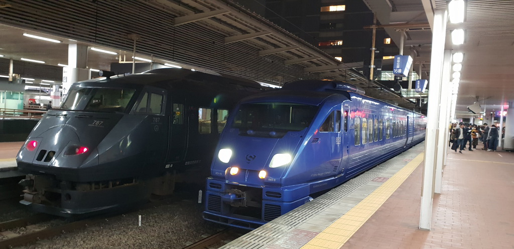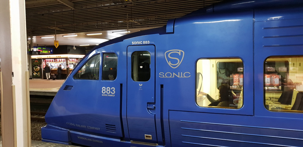 *모지코행 다음에 오이타행 소닉47 특급열차 안내가 나오고 있습니다.