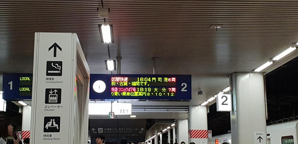하카타역에서 고쿠라행은 2번 플랫폼입니다.