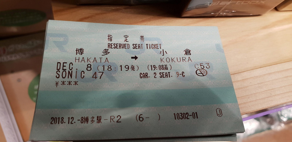 *하카타역에서 고쿠라역까지 지정석 승차권 모습. (소닉47)