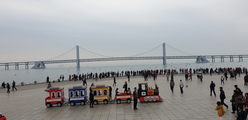 바닷가쪽으로는 부산의 광안대교와 똑같은 대교가 바다를