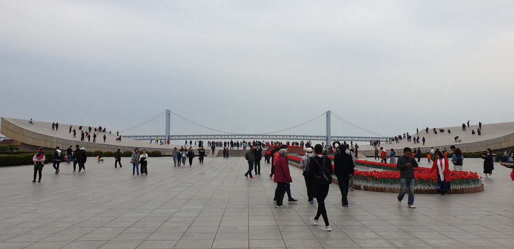*책을 펼쳐 놓은듯한 조형물과 바다를 가로지르는 대교의 모습이 조화롭습니다.