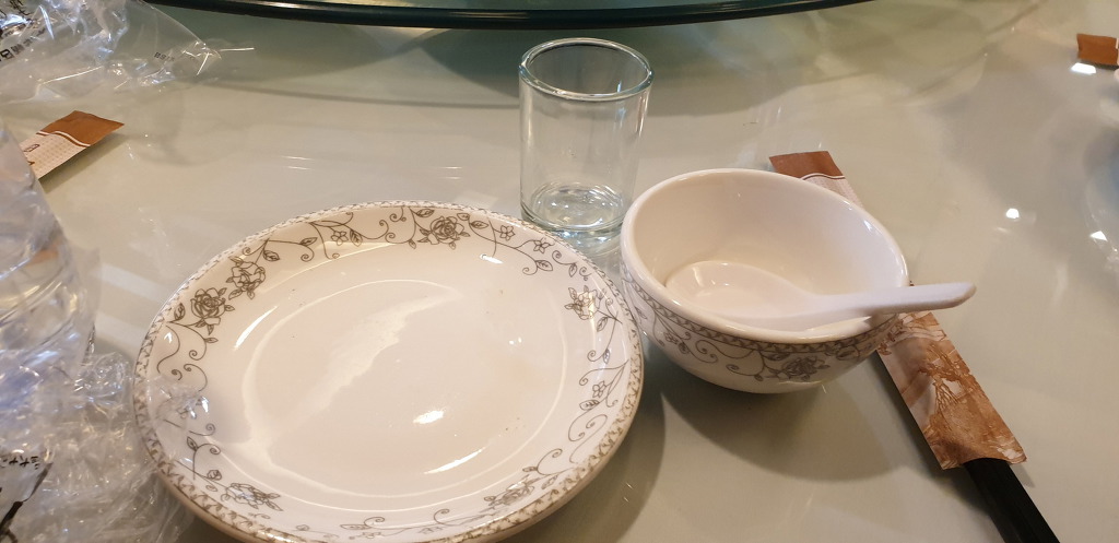 *젓가락과 접시와 찻잔이 비닐 포장되어 있어서 좋네요.