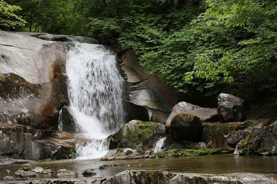 방동계곡은 방태산 자연휴양림이 개장되면서 휴양림 안에 감싸여 있다. 방태산자연휴양림의 가장 큰 매력은 2단 폭포인데 높이 4m에서 떨어지는 폭포수를 다시 받아 내려 계단 폭포라고도 부른다. 휴양림 숙소 위쪽에 자리한 마당바위는 대패질한 것처럼 평평하고 모난 데가 없어, 또 다른 절경을 보여준다.