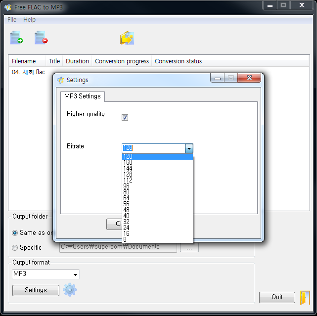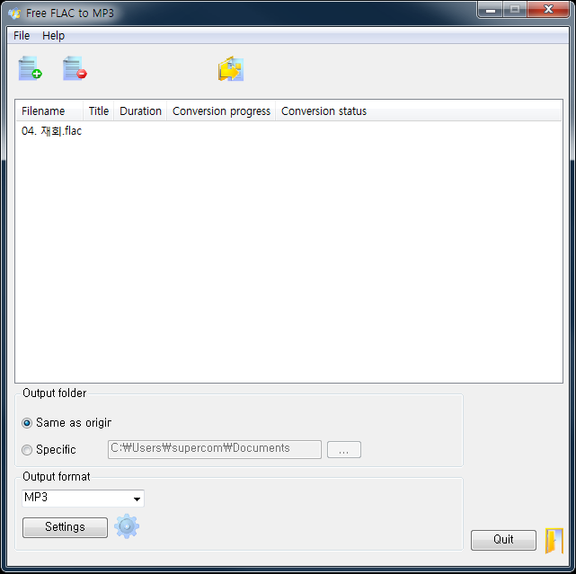 설치된 프로그램을 사용해서 flac mp3 변환을 한번 해보도록 하자.