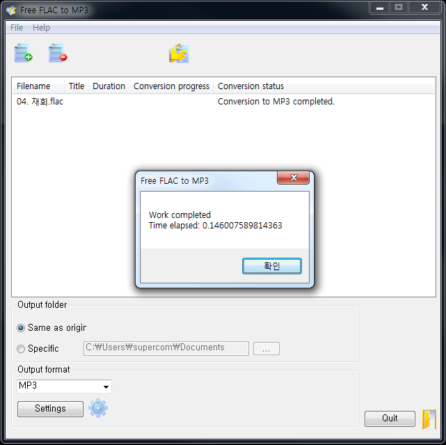 게이지가 올라가면서 flac mp3 변환이 시작되는데 생각보다는 오래 걸리지 않아서 좋다.