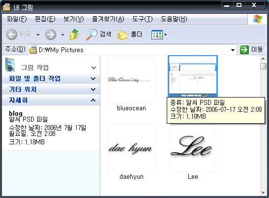 윈도우 탐색기창에서 웹디자이너들이 자주사용하는 PSD파일과 AI파일들은 보통 이미지파일과 같이 미리보기가 안됩니다.